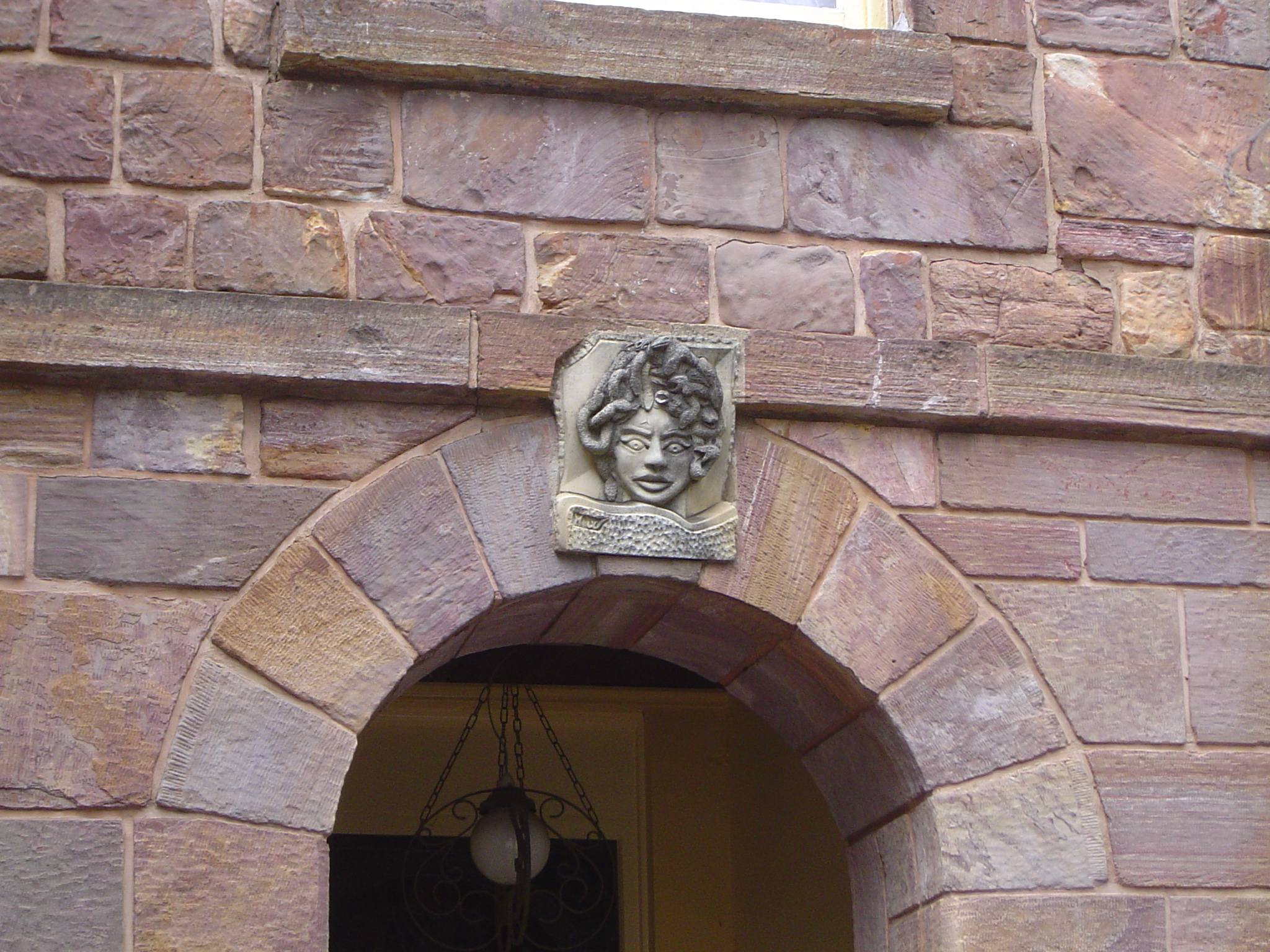 This gargoyle guards the entrance to Danckers House and Draper's Shop, which date from 1851.