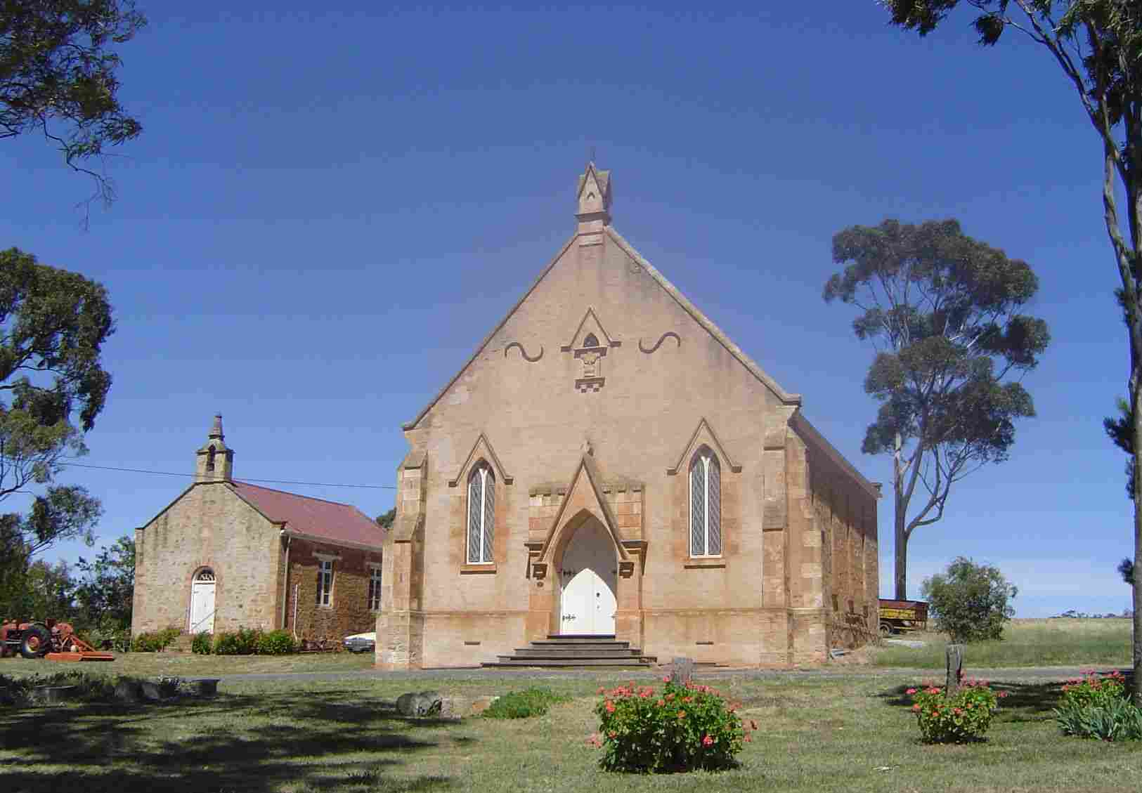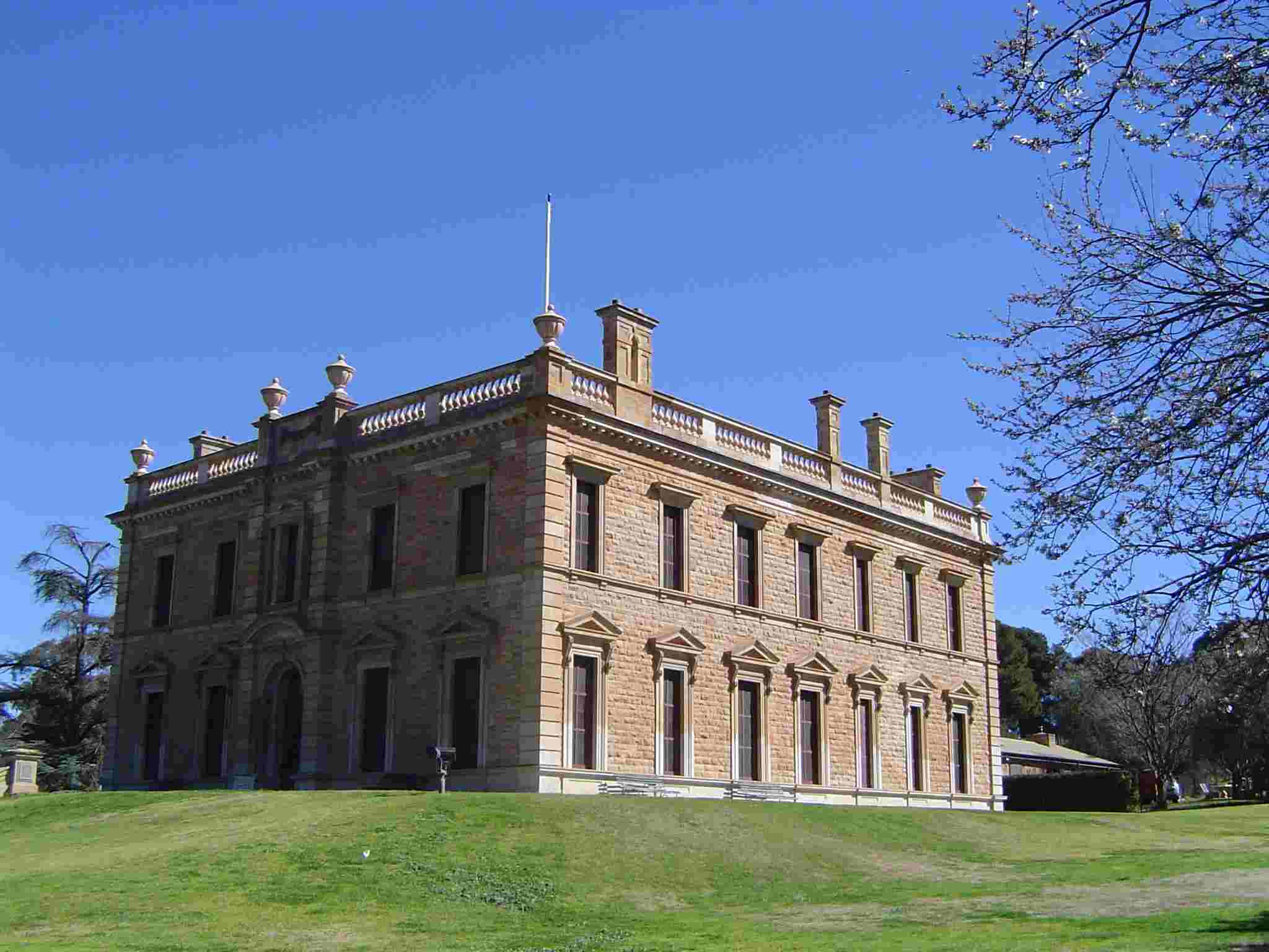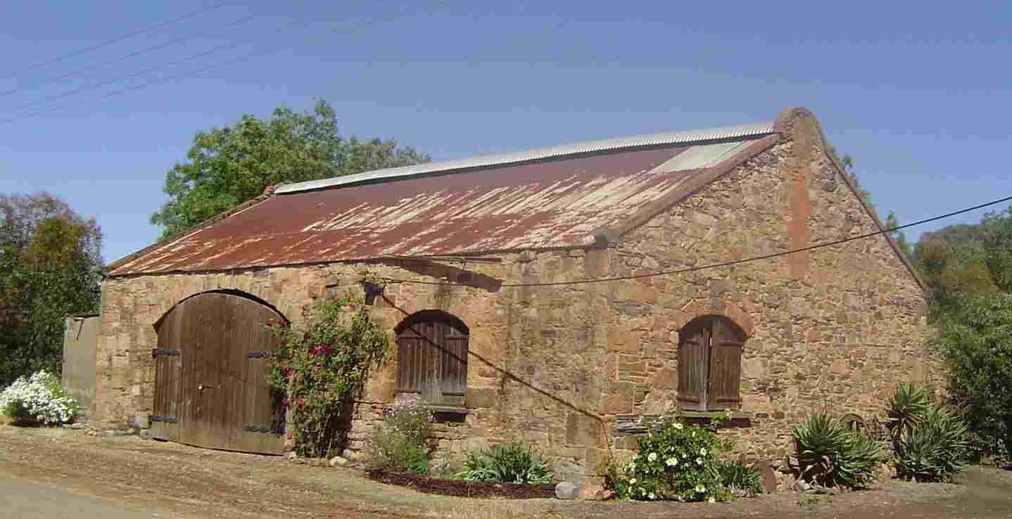 Mintaro, a Heritage Town over the hill from Clare, preserves its original character to a remarkable degree. The town's buildings are well covered with National Trust plaques. Mintaro was laid out by 1854, but was probably in use before then as a way station, perhaps because it was a convenient resting point and watering hole for those transporting copper ore from Burra to Port Wakefield. Today it is quiet and offers superb walks tracing the history of the numerous stone buildings. Mintaro is also renowned for its slate. Nearby is Martindale Hall, a stately colonial home used as a school in the film "Picnic at Hanging Rock". It is open to visitors.